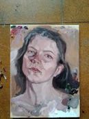 Napadlo mi, akoby som sa vracala k tomu, čo som maľovala v prvom ročníku, možno v príprave pred vysokou školou. Tak, ako asi každý na ceste k tomu, čo je práve jeho dôvod prečo maľovať, čo je vlastne tá jeho cesta, mi prišlo práve moje vkročenie do procesu ako veľmi „ľahké“, spontánne, akoby to išlo samo. A pýtam sa, či to tak má byť, netvrdím, že je to bez pochybností, práve naopak, ale či, keď prídem k bodu, keď teoretizujem minimálne, či som na tom správnom mieste a možno je to podmienené už nejakou, stále malou skúsenosťou v tvorbe. Viem, že mám to právo počas štúdia preskúmať rôzne prístupy a polohy v maľbe, mňa už však dlhšie nabáda pocit, že nie som akosi ukotvená sama pre seba, nie preto, ako ma vníma divák. Nezadefinovaná. Počas tohto karanténneho semestra, aj pred ním som premýšľala nad tým, či to, ako sa staviam k maľbe teraz, myslím formálne, nie je len akási „vzorka“, ako by som mohla a mala predsa maľovať, nazvem to, „figurálne výjavy“. Viem, že teraz nemusím povedať a rozhodnúť sa a už do konca života musieť maľovať iba to alebo to, ale tento pocit ma proste sprevádza. A možno len táto moja úvaha vychádza z frustrácie z toho, ako kde vidím, a ako to u koho funguje, a ako to vyznieva, že by to malo byť.